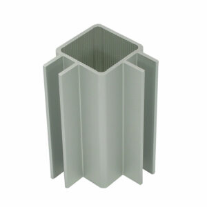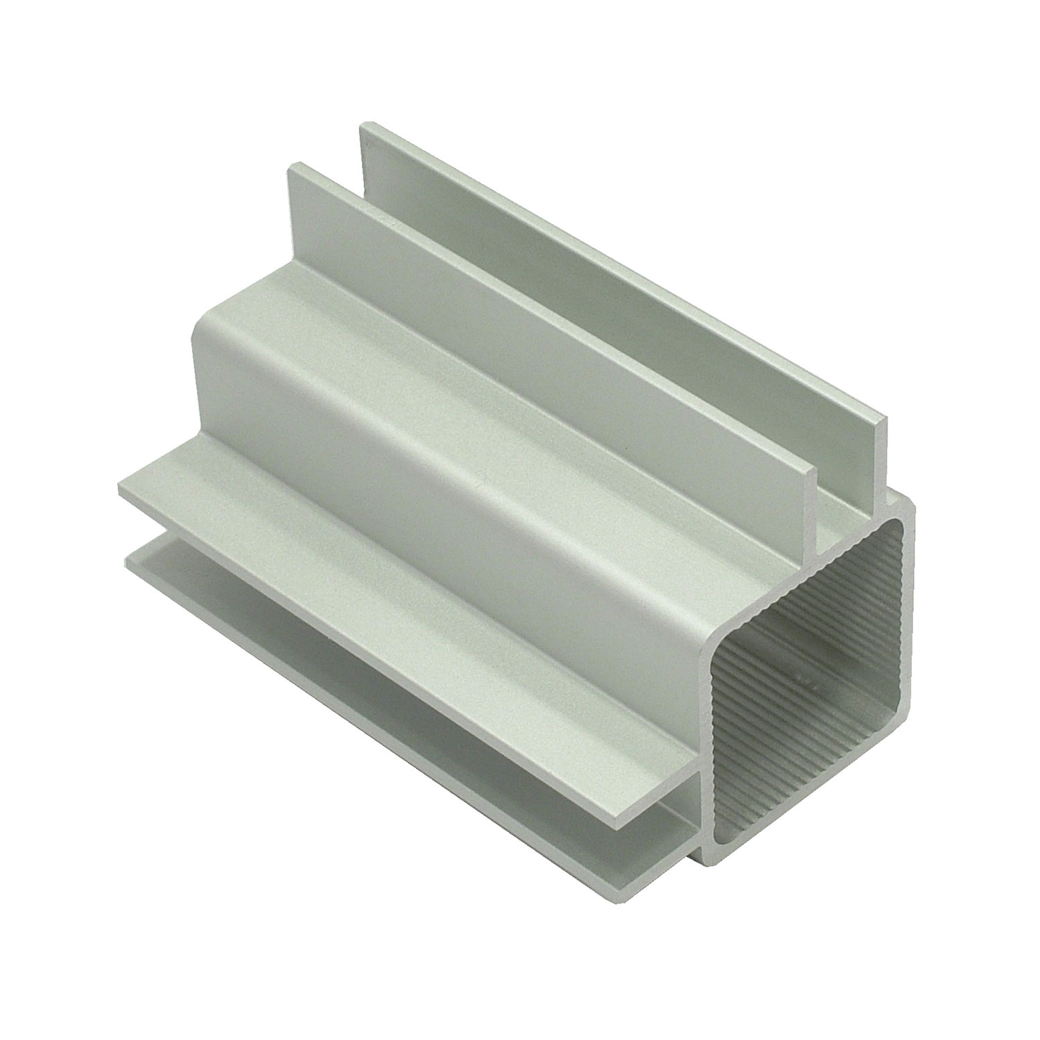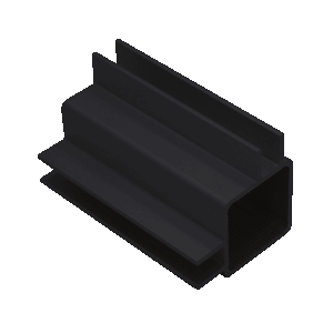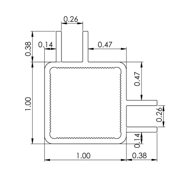 Square anodized aluminum tubing with quad 3/8” flange – .260 slot width on 90 degrees. Fits tightly with 1″ standard connectors.