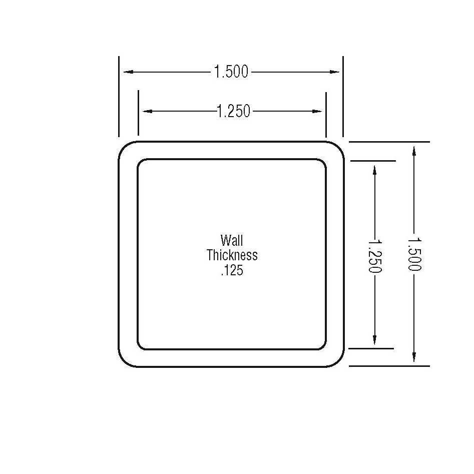 1.5″ square anodized aluminum tubing with .125″ wall thickness. Fits tightly with 1.5″ connectors.