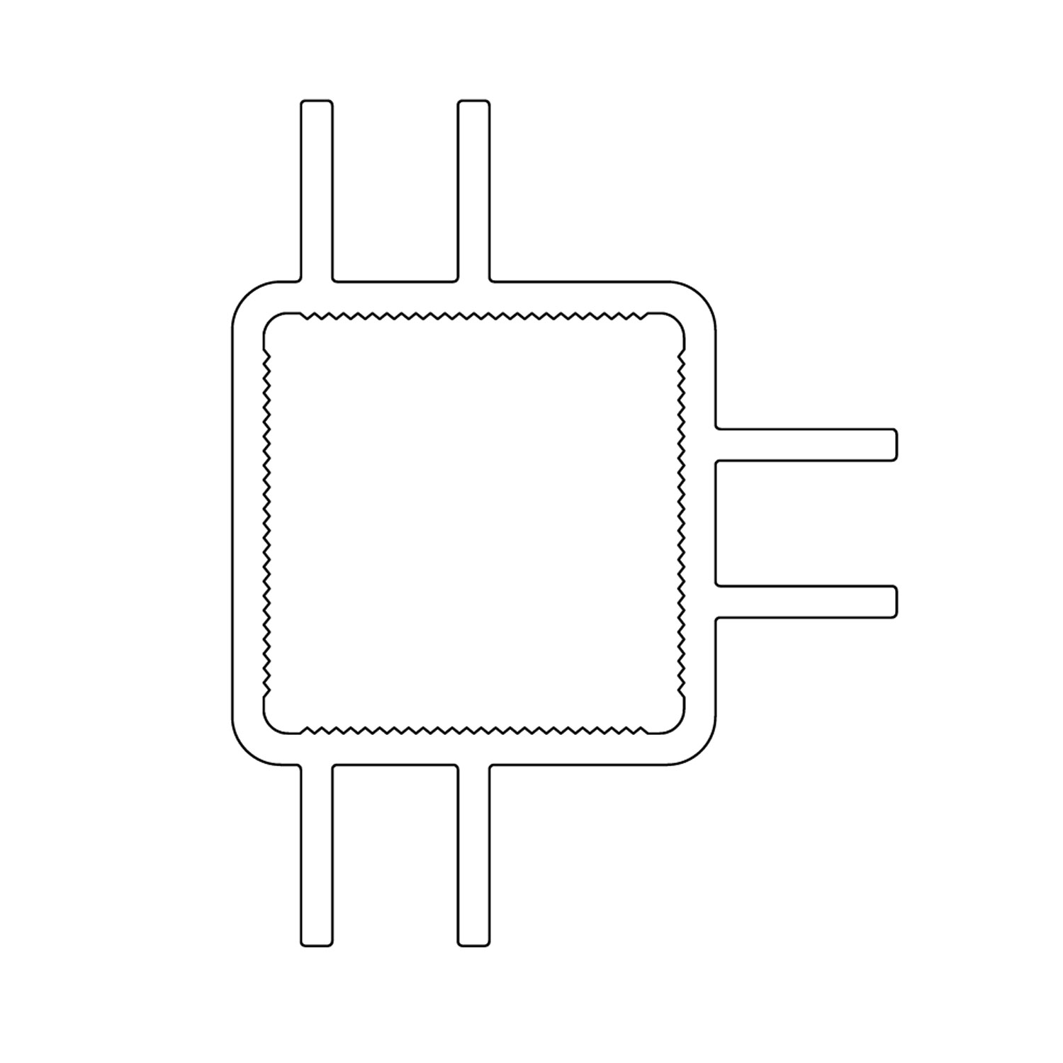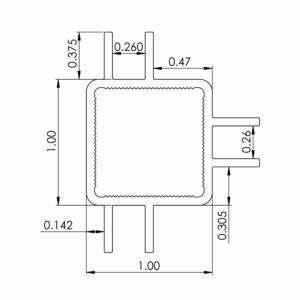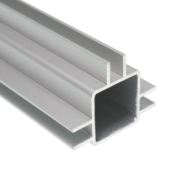 Square anodized aluminum tubing with six 3/8” flange – .260 slot width on three sides. Fits tightly with standard 1″ connectors.